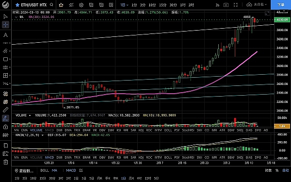 以太坊昨日称冲高回落走势,凌晨行情回落最低跌至3830一线支撑反弹,恭喜跟上昨日思路的朋友多单获利二百点,目前币价在4040附近运行,四小时级别行情连阴回落跌至ma60均线支撑,k线收针反弹,macd空头无量运行双线粘合,目前空头止跌价格拉回ma7上方,多头较为强势有再次冲高的可能,日线级别k线由阴转阳,虽有抛压但对当前局势而言没有太大影响,每次回落都是机会大胆买入,这波牛市最多才到中期未来不可估量,上方压制4100-4200,下方支撑4000-3950