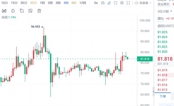 ordl日线看11号收针反弹之后昨天延续涨势收实体阳线,日内在85.1一带受阻回撤,布林带保持开口向上,均线向上运行MACD快慢线交叉向上量柱转红色微微放量,KDJ在50值下方交叉向上运行,VR指标在180值附近盘整。四小时看行情在上轨受阻布林带喇叭开口状态,MACD快慢线穿过0轴向上延伸,量柱缩量运行KDJ拐头向下,VR指标在140值附近盘整,整体来看暂时处于震荡调整阶段,上方第一阻力在85.1,第二阻力87.9。下方第一支撑79.1,第二支撑77.3.短线可以依靠支撑阻力去介入多空,小币种波动快控制好仓位,自行合理安排。