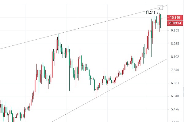 截止发稿前波卡盘口现价10.84,复盘一下,上一篇波卡的分析,下方10.05布局,上方10.95出局,不急好事多磨,短多趋势很明显,大盘在日内就会抵达10.95,顶部一直在被抬高,上方的压力位从原本的10.95到了现在11.36附近,