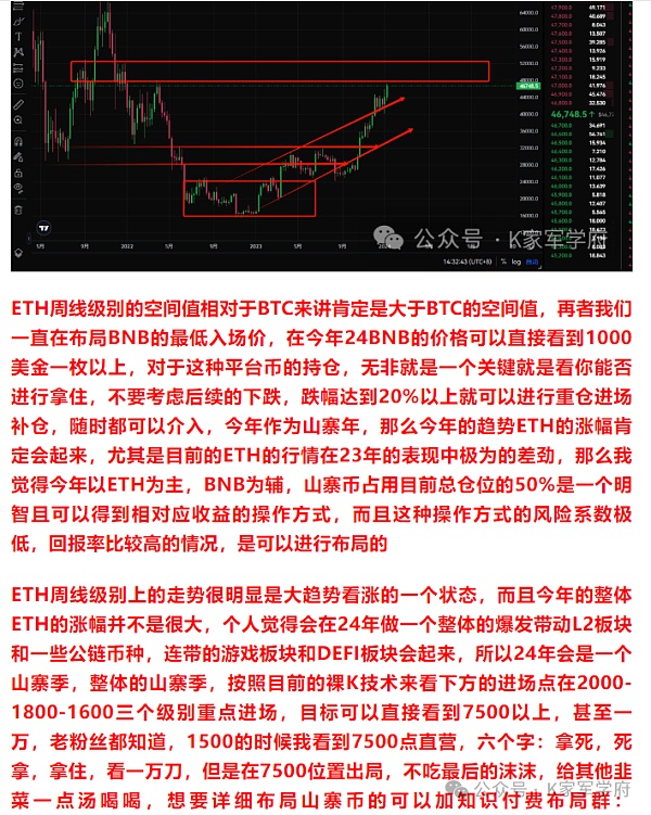 不知道有多少看过1.9号的那篇文章,当时也是在年前的一波行情看点,稍微写了几个山寨币和BTC,ETH的看点,那么行情也算是如期而至,BTC也达到历史新高的行情,ETH目前直接走向4000的上方,那么按照目前BTC达到一个历史新高,我们看看后续走势和目前市场上的一些山寨币解析
