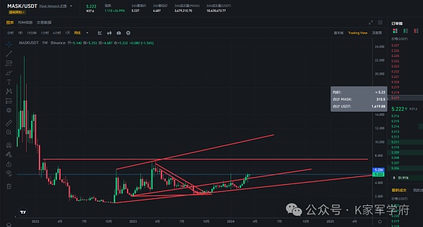 同样的在低点一直进行埋伏,可能在前期的老粉丝中比较熟悉,在22年熊市中多次埋伏,每次的收益都是1倍以上,且每次都是低点进的,那么这轮行情同样会看好,本轮是在3.2附近一直在推荐,按照现在的价格5.2相比较,短线的目标可以先看7-9位置,按照长线的目标可以直接看14美金,或者直接看到30美金一枚
