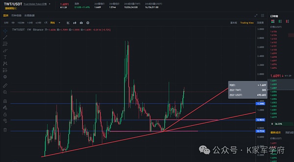 最先开始推荐的时候0.8看翻倍,最高1.8,去年底埋伏的时候大概在1.0-1.1一直强力推荐,现在的价格1.6,个人认为在本轮的行情中首先看的目标咋2.0-2.2区间一线,中线目标3.2,再往上看可以直接看到5-6美金