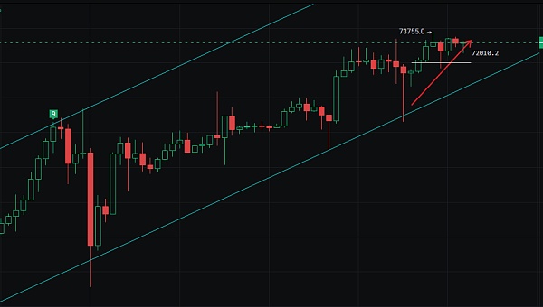 卖出点二:74000 USDT(接近最新周期内的最高价若价格能突破则可能迎来更大涨幅,但也需警惕回调风险)做空止损点:74500 USDT(高于卖出点二,为保守策略,防止突破后继续上行造成更大损失)