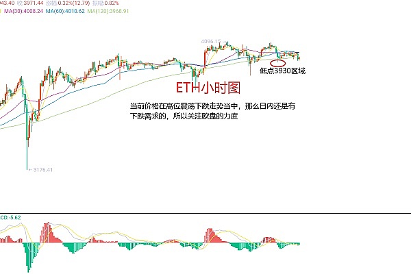 3月14日以太坊(ETH)合约技术面分析:今日方面,大周期日线级别昨日报收小阳线,K线形态上连阳单阴,价格在均线上方,附图指标金叉运行,但当前处于缩量的状态,所以我们近期要重点关注价格反弹的力度大小和延续性,这样的走势容易出现下跌反转,短周期小时图昨日欧盘下跌,凌晨没有延续而是震荡盘整,今日早间出现二次回撤走势,当前K线形态连阴,附图指标死叉运行,那么这样来说日内还有下跌的需求,需要关注的是欧盘能否破位;因此今日ETH短线合约交易策略:现价3975区域直接空,止损4001区域,目标看3930-3920区域,回撤3920区域多,止损3899区域,目标看3980区域