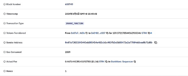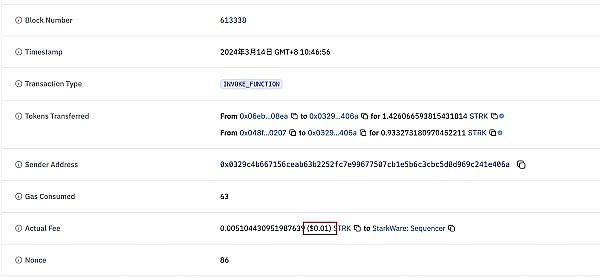 同样是 STRK 的转账,升级前消耗了 0.467 个 STRK,升级后只需要 0.005 STRK。当然这个数据会受到其它各种因素影响,这里展示出来仅供参考,更具体的数据大家可以后续关注更多相关报告。