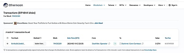 Blob 交易点进去之后会发现就是 StarkNet 的交易: