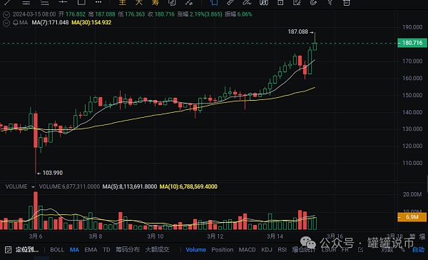 Solana 的原生代币(SOL)在市场低迷中表现强势,创下回调前 26 个月来的最高价格。SOL 全天上涨 5%,盘中最高涨至173.81美元,成为前十大加密货币中表现最好的资产之一。