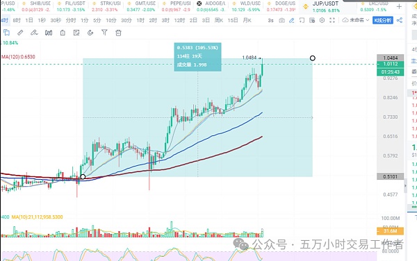 上月中旬我们VIP大家庭标记现货代码lrc和jup同一天标的目前都已经翻倍了,这就是实力,其中jup截止目前最高涨幅105.53%,lrc截至目前最高涨幅121.38%,还是我们经常说的那句现货这个就是时间换取空间,接下来要有一波大行情了,下面我们开始准备了