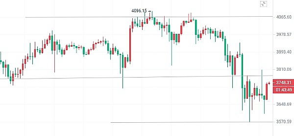 以太连续两天走单边跌入EMA移动平滑指数内,站立EMA15之上,昨日行情跳水以后以太最低至3568,最高3938,行情波动较大,选择合适的入场时机很重要,截止发稿前以太盘口的价格为3748稳稳站立EMA15这个位置,从盘口的指标显示,EMA15是平衡点,今日行情不管多空最后还是要回到这个位置附近盘整,下方关注支撑点3675