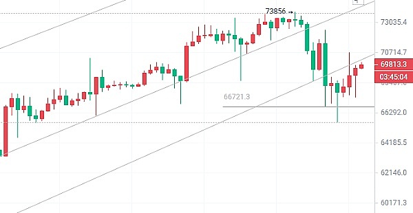 上方70700-70200不破,空,目标69700-69200-68500,破位看68000,止损70000