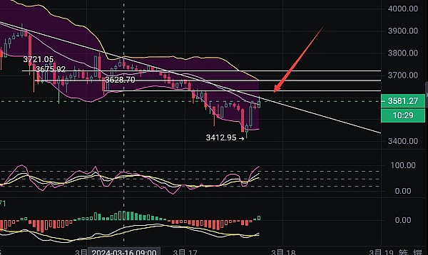 以太坊各项指标和大盘基本一致,关注3630-3605区间不破做空!破位就看3675和3720这两个点!