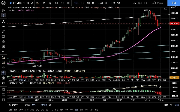 以太坊昨日跟随大饼走出一波下跌行情,最低跌至3412一线支撑反弹,随后行情一路上行至3680一线受阻,恭喜跟上思路的朋友多单获利二百点,目前币价在3630附近运行,四小时级别行情反弹触及ma120均线受阻,此线是前期支撑线目前转为压力,短期行情受阻有回落需求,但指标信号偏多,预计下跌不会有太大空间,下方关注3560支撑情况,日线级别k线六连阴走的比较弱势,触及ma30均线支撑收针,目前走势处于横盘整理阶段多空都不延续,3400关口算是守住了,预计行情后市会开启一波反弹,整体走势依然看好多头,所以思路不变保持低多为主高空为辅,上方压制3680-3800,下方支撑3560-3500