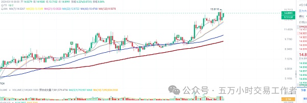 APT现在14.9美元,APT从前天15.6美元开始大幅下跌,但空头无法将价格跌破 22日均线位置《12.87美元》