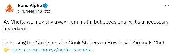 2024年3月12日 Rune Alpha 公布 Ordinals Chef 抽奖规则: