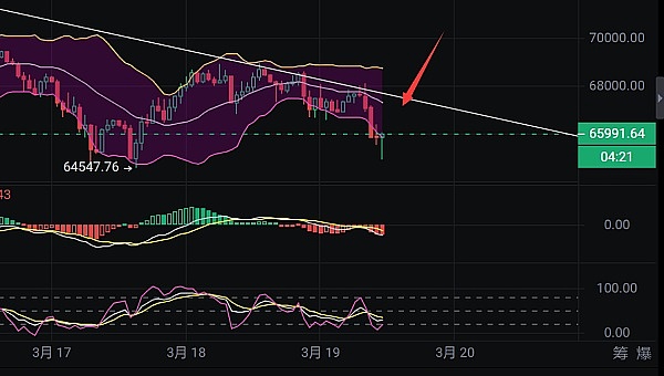 比特币行情如前日分析一般,市场情绪极度贪婪,上方有较大压强,所以空的几率比较大,也给到建议68000上方接空,今日来看币价正如所料,跌破3000+的空间!1小时线来看布林通道继续向下开口,MACD负能持续增强,KDJ向下阔散;4小时负值才刚开始,老张预计短周期还会形成较大的下调空间!建议空为主;上方关注66200,67100这两个点位;行情瞬息万变,请带好止盈止损!