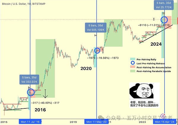 减半前反弹”将在减半前大约60天左右发生,随后在减半前一到三周左右将出现“减半前回撤”。