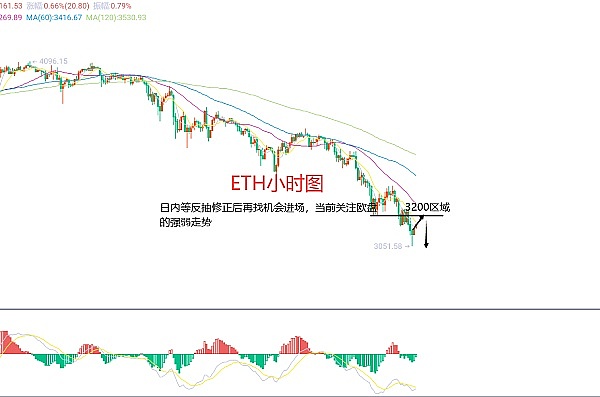 3月20日以太坊(ETH)合约技术面分析:今日方面,大周期日线级别昨日报收大阴线,K线形态上连阴下跌,价格在均线下方且持续向下破低,附图指标死叉向下放量运行,但K线形态上价格已经是出现偏离均线了,所以这里大家要注意价格的反抽修正风险,不要盲目扛单;短周期小时图昨日欧盘价格下跌破位前一日低点,凌晨修正今日早间延续,当前支撑反弹,那么日内是要看修正走势的,所以不能直接空,要等反抽修正后再进场了,因此今日ETH短线合约交易策略:反抽3200区域空,止损3230区域,目标看3120-3200区域