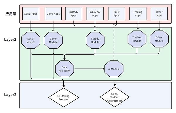 比如,社交和资产托管这两个场景对交易速度和安全性的要求完全不一样。那我们就可以在Layer3上把不同场景的需求定制化,通过模块化的设计让用户根据自己的需求自由组合。