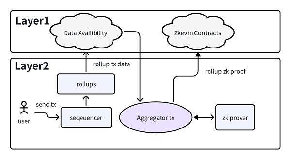 将交易数据 Rollup 到 DA,链下验证 ZK-Proof,验证失败可以使用 DA 的数据生证验证,若发现 ZK-Prover 做恶,对其进行惩罚;