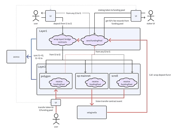 资金平衡程序会将 staker 在一层的资金划转到各二层的资金池 (FundingPool)。资金平衡的功能主要保证各条链上的资金是平衡的,不会出现链的资金匮乏问题。