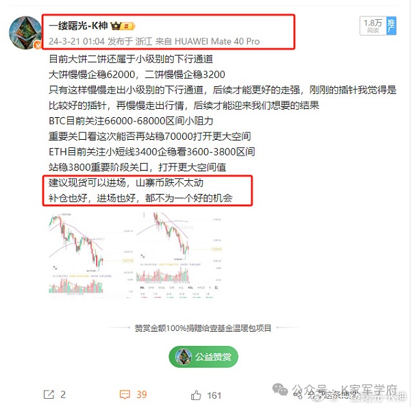 昨天凌晨还发文,给到建议让大家明确的可以进场 。