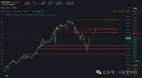 四小时级别的走势上,目前已经触及3000-3200区间的支撑进行探底支撑反弹,那么现在按照目前的阶段来看,3300点就是目前的短线级别的支撑点位,上方的第一目标:3700-3800区间一线,后续突破3800点并去站稳这个位置直接再看新高第一线位置4100-4200区间附近,后续可以直接看4500点一线,再看就是直接看历史新高的行情,把握当下的机会,迎接目前的这波行情。