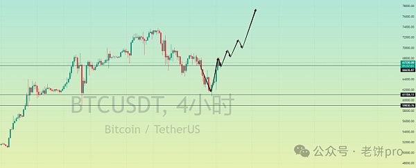 大饼子开始V反了,目前走势很强 小级别突破后回踩至4H 颈线支撑开始收针继续向上,这波如果再上去的话 至少打个新高或者次高点,有可能会是减半前的最后一波比较大的行情,上方关注7W 这个分割线