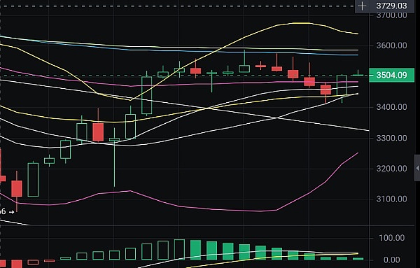 以太行情2小时线来看昨晚间价格在EMA120处再次承压下调,和昨日文章操作建议中3500上方空完美契合,今凌晨币价在EMA30与EMA15交叉支撑点再次反弹到3500上方;4小时来看日内行情将继续在EMA15至EMA120之间,上方EMA180不破位的话建议还是在3550-3570处空单入场,下方继续关注3450-3430处支撑不破多单入场;下方破位3420的话就看到3380至3215区间;行情瞬息万变,请带好止盈止损,见好就收!