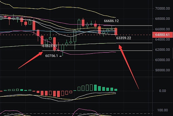 比特币早间文章给到66200-66500-66850处可空单入场,目前已收获2000点+晚间可持续关注下方63300,破位就关注到61850;行情瞬息万变,请带好止盈止损,见好就收!