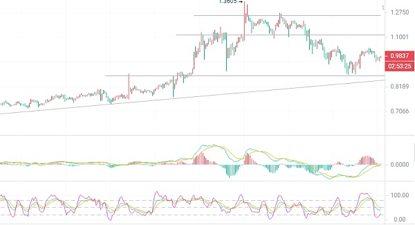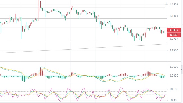 日K线周末开始横盘,本周行情基本已经定型,具体要关注下周的趋势,目前MACD开始缩量增稠,主力蓄意在1.0整数关口盘整,加上KDJ向上金叉成型,短期内基本面还是比较不错的,整体趋势稳定,没有太大的利空的话柚子币现货可以继续持有,至于超短波动的话可以关注四小时短线趋势,详情可以咨询笔者,建议仅供参考风险自担