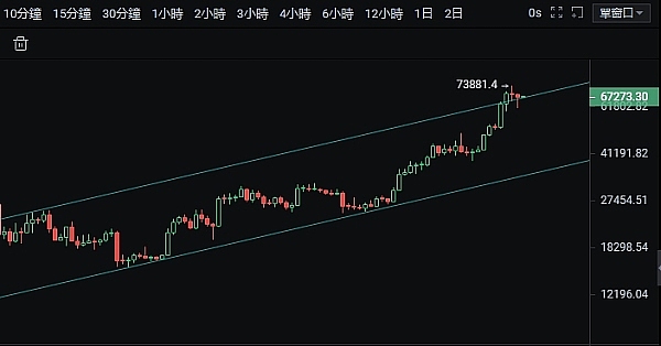 周线级别并未像预期的一样来收取黄昏之星,让原本明朗的走势现在又变得扑朔迷离,那么近期就只能先等破掉日线级别中轨压制位以后看上方73000到下方63000区域内的宽幅震荡!