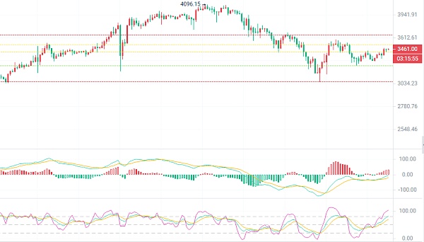 从四小时超短趋势来看,以太坊可能会冲击3520的压力位。然而,短线多头行情可能难以开启,因为EMA10和15重叠,压力加大。MACD方面,需要注意放量出现一大一小的现象。如果DEA和DIF向下交替,将意味着趋势转为空头。目前DIF和DEA在0轴下方向上拉伸。KDJ在3520附近受阻。布林带上轨压力位与趋势指标EMA的压力位重合于3520。综上所述,关键点位已经找到,稳健投资者可等待明确趋势后再顺势操作,这样更容易把握利润空间。