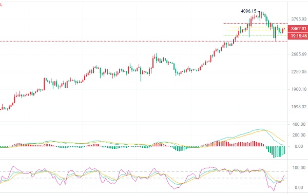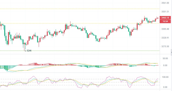 首先回顾一下以太坊昨日的走势。在昨天的文章中,我们提出的参考买入点为3300,目标价为3450,成功赚取150个点的空间。目前价格为3460,多头势力强劲,需注意风险控制。我们之前提到的空单建仓点为3520,止损点为3550附近,以防多头全面爆发。请注意谨慎操作,并密切关注市场变化。