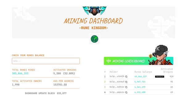 2024年3月21日,Bitcoin Knight 官方发文宣布 Rune Kingdom 的看板功能已上线,输入地址即可查看你已挖到的符文代币余额。