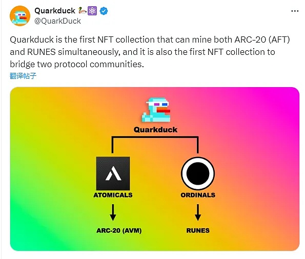 3、Quarkduck 将成为首个能同时挖 ARC-20 代币 和 Runes 符文 的 NFT 项目