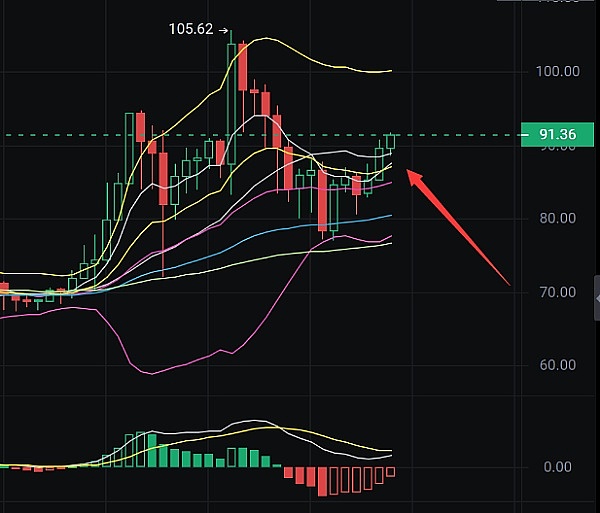 莱特币今早间开盘价89左右,在维持了一天区间震荡后跟随大盘顺势而上;2小时来看币价在布林带中轨企稳形成反弹,当前币价持续在上轨附件运行,KDJ交叉向上发散,MACD缩量上行,DIF戏剧性的拐头向上即将穿过DEA;4小时来看,EMA15-EMA180所有均线都在下方形成支撑;日线级别来看币价也在布林带中轨上方,EMA7向上穿过EMA15;综合上述指标来看,币价在短期内还会形成上调的趋势;下方建议在87-85区间布局多;上方关注98-96区间能破进一步破位,再考虑空单入场;行情瞬息万变,建议仅供参考,风险自担!