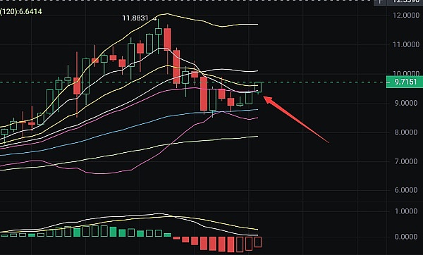 波卡的话从12小时线来看跟以太坊一个状态,都是布林带中轨处与EMA7形成支撑后向上突破EMA30均线,MACD0轴上方开始放量,DIF向上穿过DEA,,KDJ超买现象严重;再看日线级别币价离布林带中轨还存在着一定的空间,MACD能量在0轴下方持续缩量,KDJ如果超买现象形成定局,那么价格还会有较大的提升空间!综合上述指标来看,建议关注上方10.10这个位置能不能突破,站稳的话上方就看到10.81压力位;空单需结合盘面变化再进场,建议还是已低多为主,下方关注9.44-9.30不破接多即可;行情瞬息万变,建议仅供参考,风险自担!