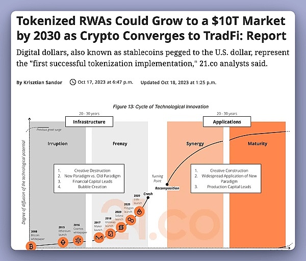 RWA 已成为本轮周期中仅次于Solana Memecoin 的第二受欢迎的叙事。预测表明,到2030 年,RWA 的市场规模可能达到10 兆美元。