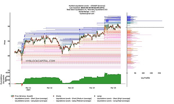 此外,我们还考虑了清算热图。根据 Coinglass 的说法,如果 LTC 继续上涨,许多头寸将面临清算风险。