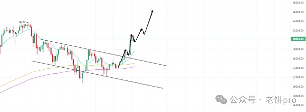 大饼子 这波走的还是比较强势的,目前暂时在7W附近盘整 ,这个位置加速上涨的话很大概率就要直接突破新高了