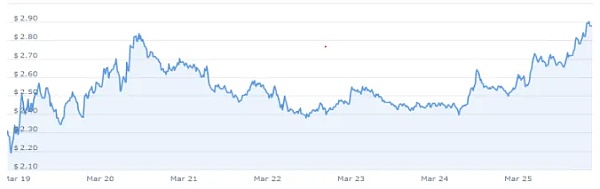 此外,随着人工智能代币的宣传力度加大,FET 今年以来一直在向北发展。最后一个盘中,Fetch.ai 大幅上涨 12.26%,交易价格为 2.83 美元。