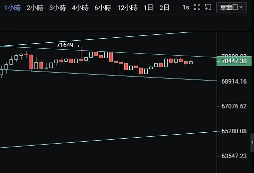 日线布林带平缓运行,K线十字星,日线级别看,依旧以高位的宽幅震荡为主,下方目前支撑中轨68200一线;4小时布林带开始缩口,MACD买盘量能柱缩量,KDJ指标向下发散,从4小时均线形态看,目前同样处于弱势,而小时线目前处于高位的布林带区间内震荡运行,而整体属于一个震荡偏弱的下行通道,下方强支撑依旧处于下轨与60日均线的重叠位69300一线,因此这也是日内短线所需注重的点位!