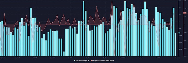 据Santiment统计,3月26日,WEN的社交量跃升至156。此次加息证明市场注意力已转向基于 Solana 的代币。