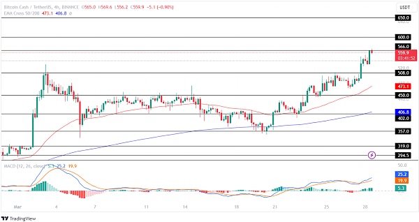 师爷陈3.28:BCH突破560美元大关 即将上涨15%?