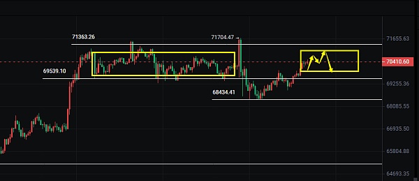 再看看今天盘面走势,昨晚的下跌今天并没有出现延续,日内白盘还是震荡上涨的一个姿态,大饼从早上到现在已经涨了1600多美金了,就这速度不用我多描述吧?今天还是震荡为主,白天依旧继续看震荡上行逐步做多,晚上彦灵会继续在71500下方附近执行看跌策略,看晚点预计会出现一波1000多点的跌幅,注意我追求的跌幅并不是很夸张,因为1000个点距离现在来说,能够脱离70500就等于说是一个下行破位了,你不要忘记,行情昨晚是诱多上破,接下来才是选择方向的重要时机。今日操作依旧多空都有机会,昨天彦灵就说过,这是我最喜欢的行情状态,也是咱们做合约的最喜欢的行情 多空都有不错的空间可以把握到手是真的很香,不过这也更考验技术专业性的行情,所以一般人可能并不能操作的很好,即使给了点位他也不一定能及时抓到机会,如果你是这样情况,可以前来找到彦灵获.取实时现价通知,专业事交给专业人,不要自己盲目操作。