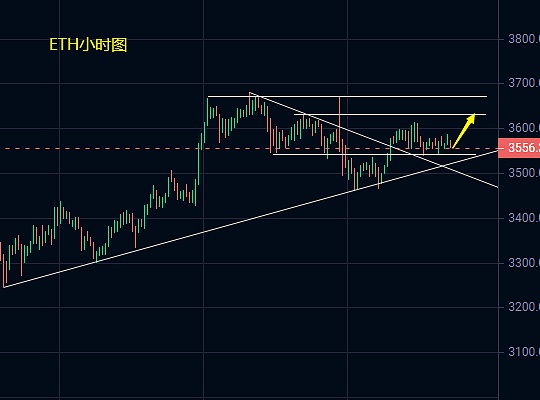 以太坊,依旧是偏弱的一方,好在昨日守住了3550,此位置作为日线上周突破的关键压制位,本周同样成为短线走势的多空分水岭,昨日币价回调后反弹,盘中再次突破3600关口,但是整体弱势震荡,3550上方还是保持看涨的思路;日线级别重阻在3670,此位置本周一旦有效突破企稳的话,短线多头将加速上行;小时线短线横盘调整,日内依托3530-3550先看反弹,上方阻力关注3620。