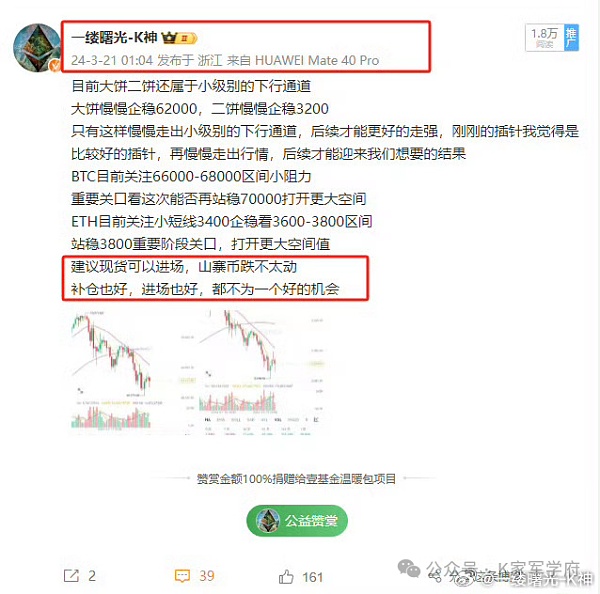 老K从来不喜欢马后炮,永远都是走在前沿,只做前期提前的预判后期走势