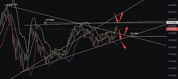 昨日下午SOL文章中有提到币价会有一波回调,果然下方突破184就关注181位置,不破不破则轻多,完美低多布局,行情一直反弹到194位置;当前来看从1小时和4小时指标来看币价还是处于稳步上行的大趋势,4小时KDJ又将重回超买区,MACD能量继续增持;日线级别来看,布林带通道变窄,MACD0轴下方能量继续保持,综合前几个死叉形态来看,币价长周期还是会有下调空间,如果DIF在DEA下方突破11.04值后将会出现大滑水现象,反之将依旧是看好趋势;建议上方关注197位置能否突破,破位就看前高;不能破位的话还是会跌至187关键位置;破位187那么币价将会持续长周期回调;不破则可以考虑请多入场;行情瞬息万变,请结合实时盘面变化在操作,建议带好止盈止损,把握好风控!