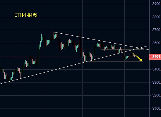 以太坊,日线实际上震荡偏空的走势,上方3670一线多次承压之后,日线的高点有所下移,目前阻力位下沉到3600关口,同时短线也失守3550多空分水岭,所以整体而言以太坊的随时有向下运行的风险,一旦大饼无法向上破位带动上涨的话,高位震荡反而会导致以太坊弱势下行;短线,下方需要关注昨日凌晨的回踩位3460一线,上方关注3550-3600两道阻力位压制,日内同样采取高估低渣的策略应对行情发展。