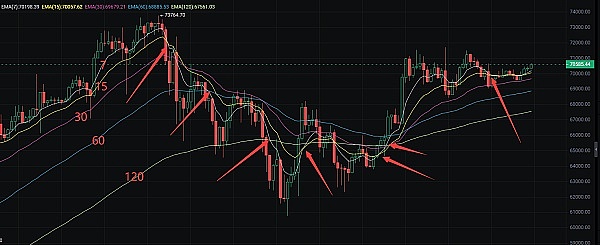 EMA均线的图解可以通过观察币价价格与EMA线之间的关系来判断市场走势。当币价价格位于EMA线之上,并且EMA线呈上升趋势时,说明币价处于上涨趋势,此时是买入信号。相反,当币价价格位于EMA线之下,并且EMA线呈下降趋势时,说明币价处于下跌趋势,此时是卖出信号。综上所述,历辉认为KDJ形态、MACD图解和EMA均线都是用于技术分析和交易决策的重要工具。通过理解和运用这些工具,交易者可以更准确地预测市场走势,并做出相应的交易决策。然而,历辉提醒大家需要注意的是,这些工具仅仅是辅助工具,不能单凭它们来确定交易策略,还需要结合消息面及其他因素进行综合分析。